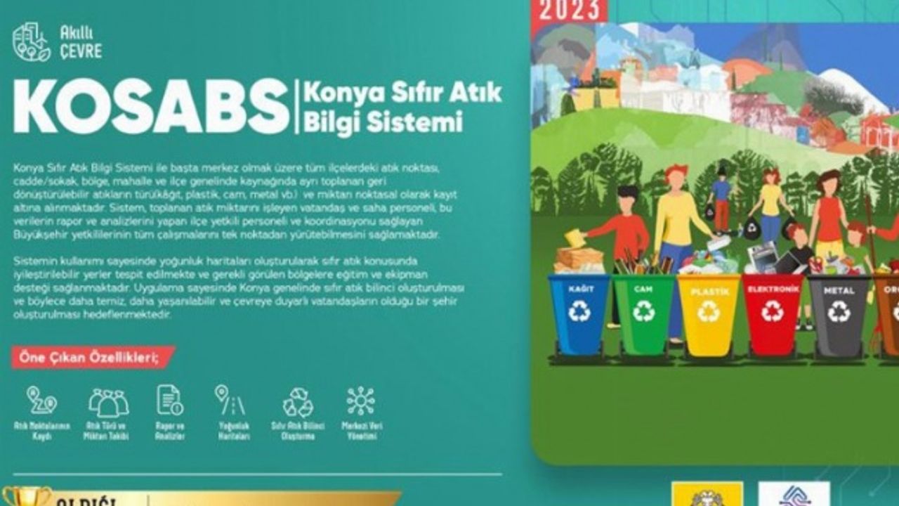 Konya, Sıfır Atık konseptini şehir genelinde yaygınlaştırma ve çevresel sürdürülebilirliği teşvik etme amacıyla tasarlanan KOSABS’ın yanı sıra bu alandaki başarılı uygulamaları ile örnek akıllı şehir olmaya devam ediyor.