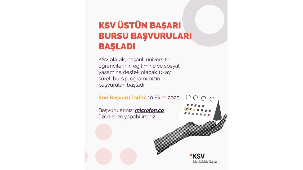 Toplumsal alanda gerçek ve kalıcı bir değişim yaratmayı hedefleyen Dr. (h.c.) İbrahim Bodur Kaleseramik Eğitim, Sağlık ve Sosyal Yardım Vakfı’nın (KSV), gençlere fırsat eşitliği ve kapsayıcılık sağlayan Üstün Başarı Bursu için başvurular başladı. Başvurular, 10 Ekim tarihine kadar devam edecek.