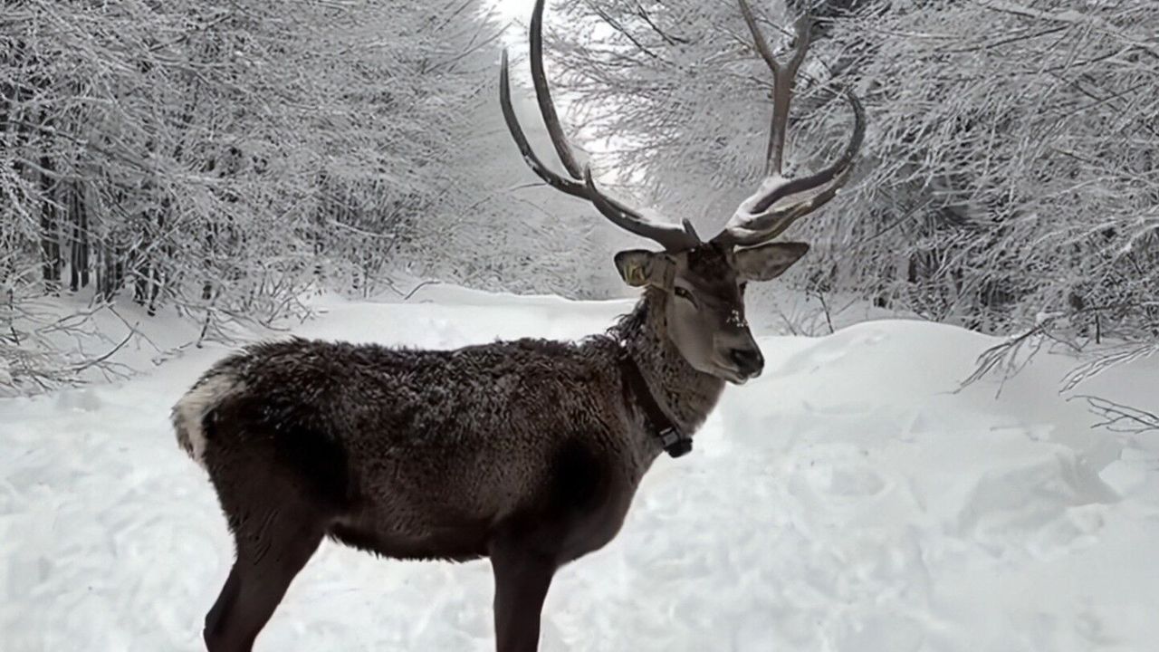 Kocaeli Büyükşehir Belediyesi’nin “Samanlı Dağları Kızıl Geyik Yerleştirme Projesi” kapsamında Ormanya’da yetiştirilen ve Kuzuyayla’da salınan kızıl geyikler, kar yağışıyla birlikte yeniden görülmeye başladı.