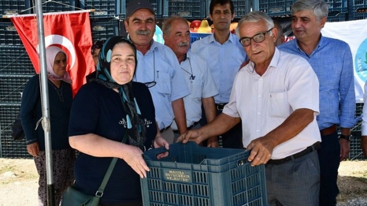 Manisa Büyükşehir Belediyesi, ‘Meyve Üreticilerine 120 Bin Kasa Desteği’ projesi kapsamında Selendili bin 50 üreticiye 10 bin 500 adet kasa desteğinde bulundu.MANİSA (İGFA) - Üretken belediyecilik anlayışı çerçevesinde, tarıma ve kırsal kalkınmaya desteklerini aralıksız sürdüren Manisa Büyükşehir Belediyesi, hayata geçirdiği Meyve Üreticilerine 120 Bin Kasa Desteği’ projesi kapsamında Selendili üreticilere 10 bin 500 adet kasa desteğinde bulundu.