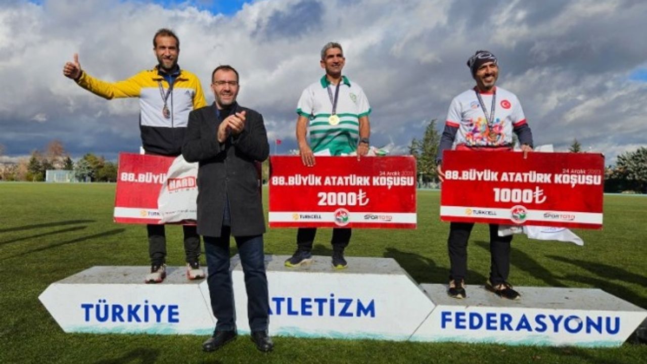 Yarış sonunda Ahmet Bayram’a ödülünü Türkiye Atletizm Federasyonu Başkanı Fatih Çintimar takdim etti.
