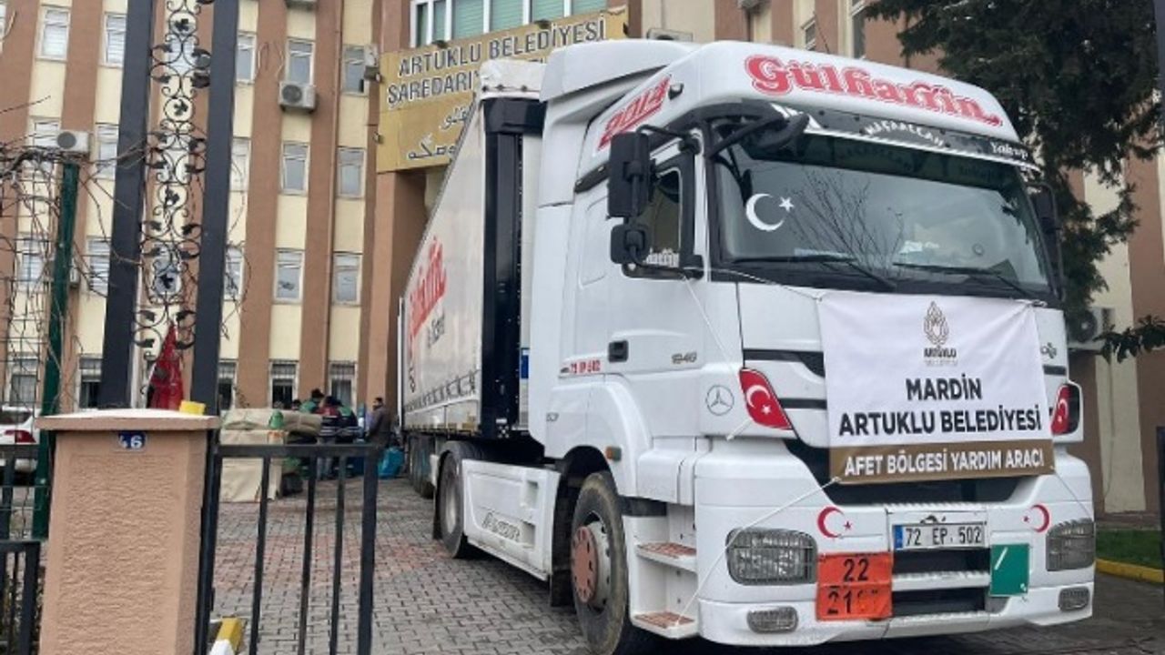 Mardin'in Artuklu Belediye Başkanı Mehmet Tatlıdede koordinasyonunda yürütülen yardım sevkiyatında, battaniye, su, gıda, ısıtıcı, temizlik ve ekmek gibi temel yaşam malzemeleri afet bölgesine gönderiliyor. Ayrıca afet bölgesine çok sayıda iş makinası ve ekipmanlar da sevk edildi.