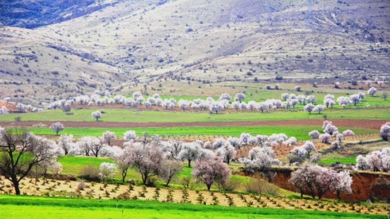 Merkeze bağlı Yeşilli ilçesinde badem ağaçları ilkbaharın gelmesiyle açan badem çiçekleri görüntüsü seyrine doyumsuz manzaralar sunmaya başladı.