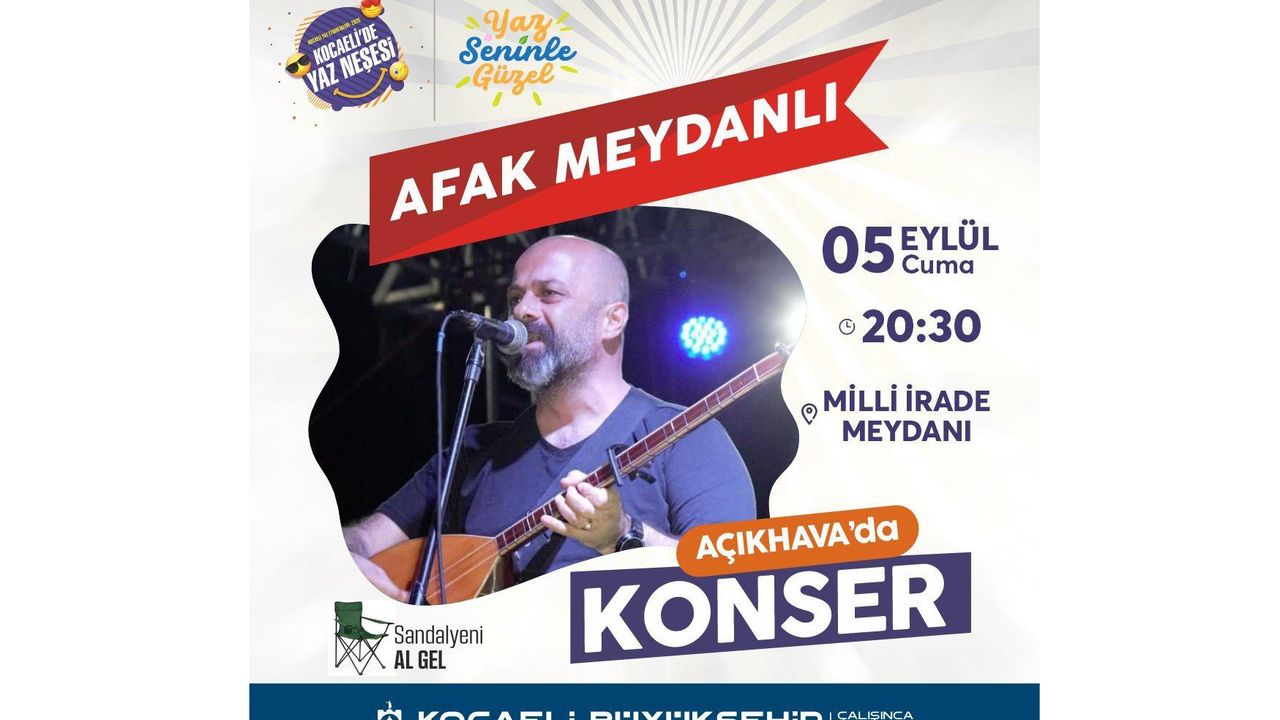Her hafta farklı bir yerel sanatçının sahne aldığı konser serisinin bu haftaki konuğu, Kocaeli’nin sevilen sanatçı Afak Meydanlı olacak. 5 Eylül Cuma akşamı (yarın) saat 20.30’da başlayacak konser, açık havada unutulmaz anlara ev sahipliği yapacak.
