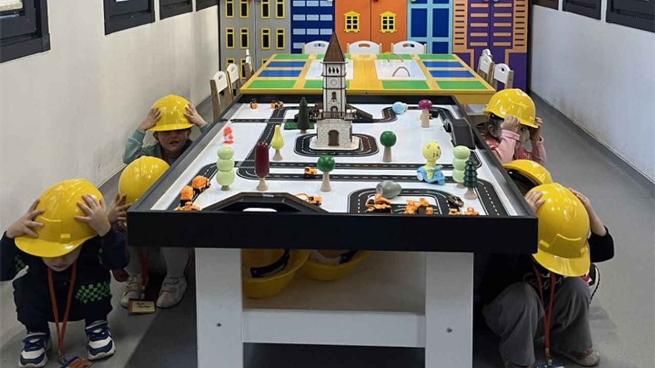 Programda ayrıca güvenli yapıların nasıl inşa edildiği ve dayanıklı binaların önemine dair örneklerle “sağlam bina nasıl yapılır” konusu işlendi. Minik mimarlar, maket şehir üzerinde güvenli alanlar belirleyerek, aileleriyle birlikte toplanma alanı planlamasının önemini öğrendi.