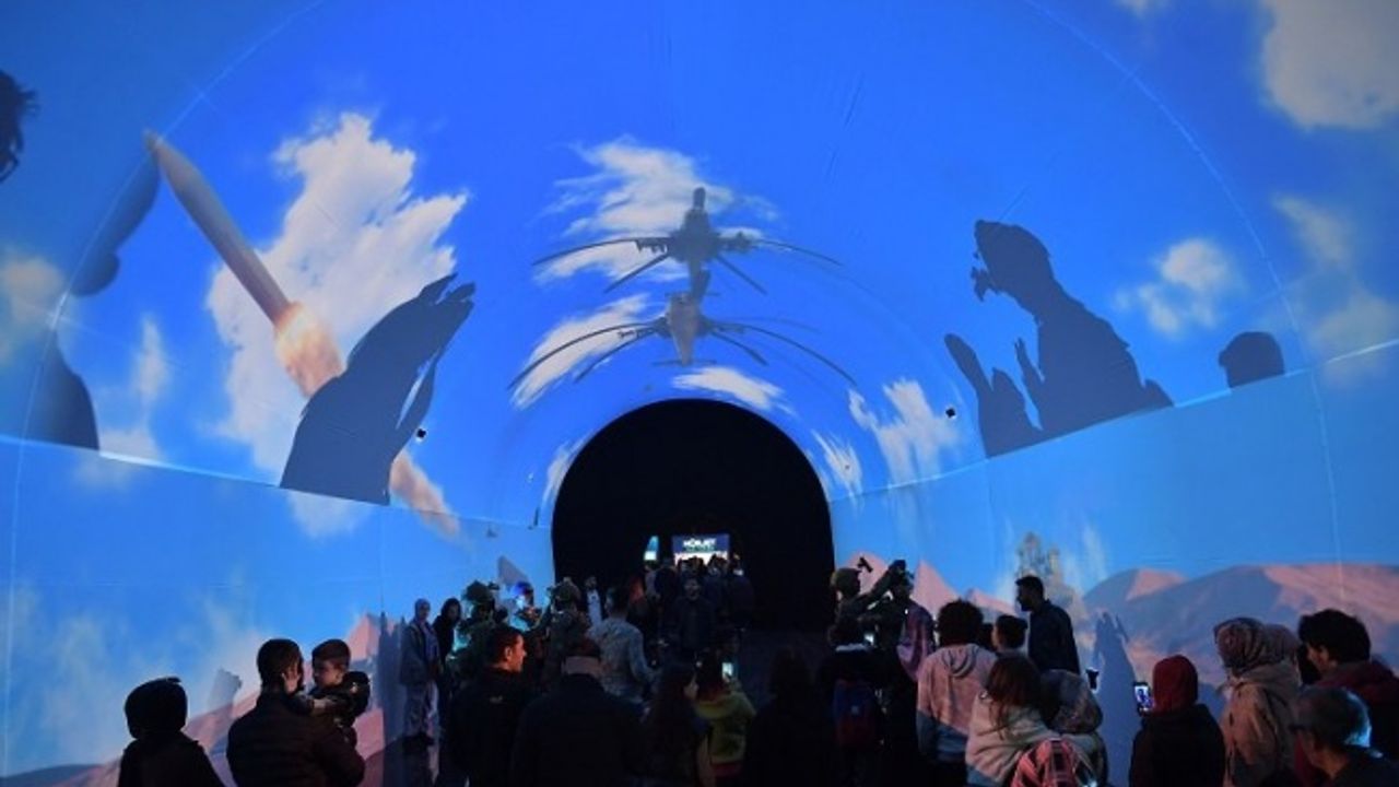 Dijital tünelde Milli Muharip Uçak (MMU), TCG Anadolu SİHA Savaş Gemisi, Atak Helikopteri ve Altay tankı gibi projelere ait görüntüler muhteşem görsel şovlarla sunuluyor.