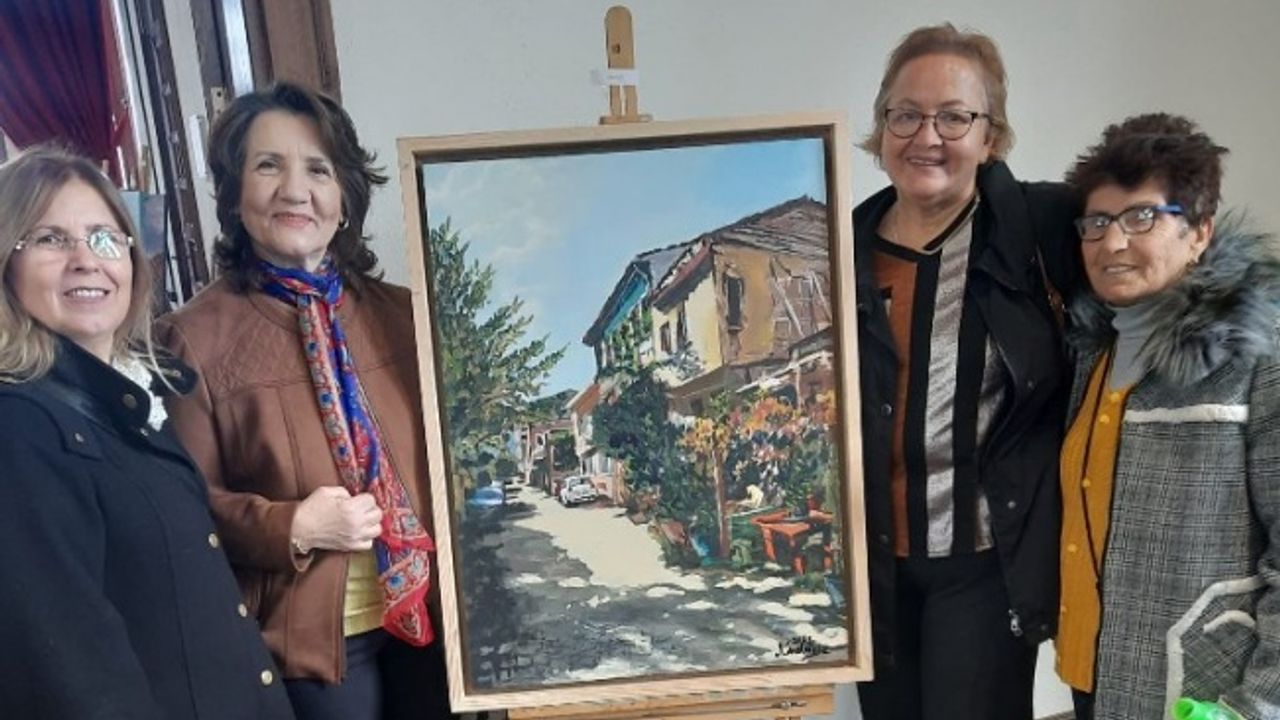 Bursa'nın Mudanya ilçesinde geliri depremzedelere gönderilmek üzere "Mudanya-Tirilye" temalı resim sergisi açıldı.BURSA (İGFA) - Nilüfer Belediyesi Ataçarşı Resim Atölyesi sanatçıları tarafından Mudanya Tirilye Mahallesi'ndeki Taş Mektep'te yağlı boya resim sergisi açıldı.
