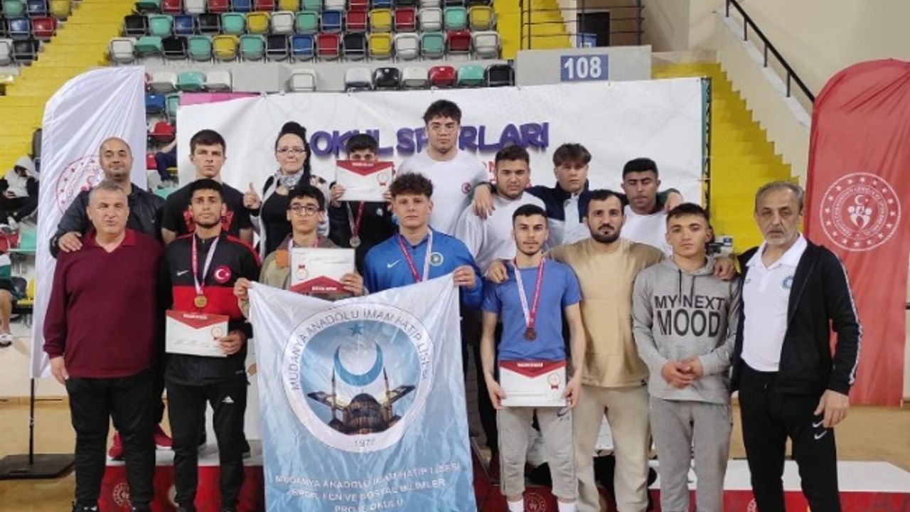 Bursa'nın Mudanya ilçesinde eğitim öğretim veren Anadolu İmam Hatip Lisesi takım halinde katıldığı grekoromen güreş müsabakalarında Türkiye Şampiyonu oldu.BURSA (İGFA)-- Katıldıkları tüm spor branşlarında derecelerle Bursa'ya dönen Mudanya İmam Hatip Anadolu Lisesi öğrencileri, Balıkesir’de düzenlenen Okul Sporları Türkiye Şampiyonasında büyük başarı elde etti.