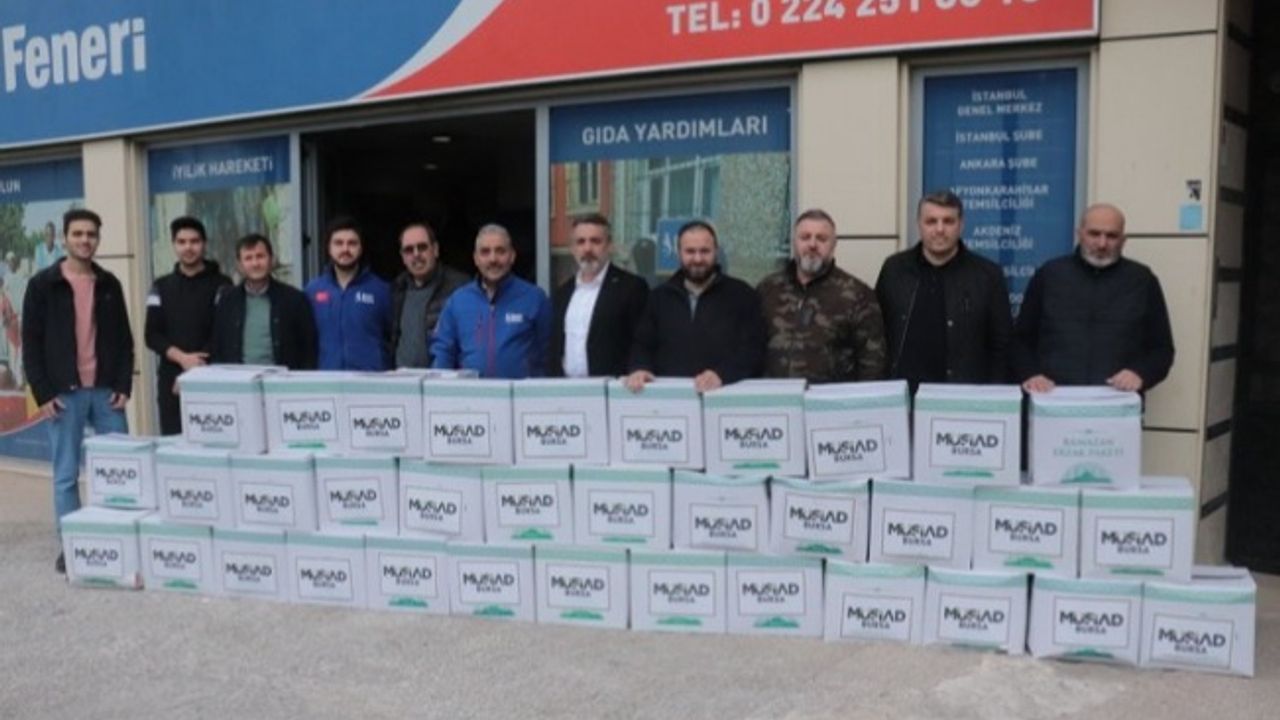 Müstakil Sanayici ve İşadamları Derneği (MÜSİAD) yönetimi, üyelerinin katkılarıyla oluşturulan erzak kolilerini ihtiyaç sahiplerine ulaştırılmak üzere kurumsal yardım kuruluşlarına teslim etti.BURSA (İGFA) - MÜSİAD şubeleri ile organize bir şekilde yardımlarını deprem bölgesine ulaştıran ve geleneksel yardımlarının yanı sıra depremzede ailelerle de iftarda bir araya gelen MÜSİAD Bursa Şubesi, ramazan ayında ihtiyaç sahiplerine yardım eli uzatmayı sürdürüyor.