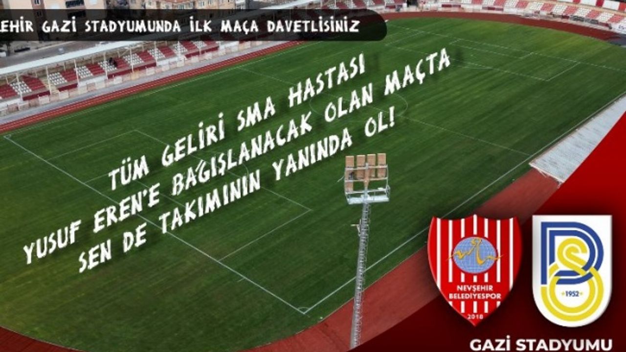 Nevşehir Belediyespor, yenilenen Gazi Stadı’nda cumartesi günü saat 14.00’te Derince Belediyespor ile karşılaşacak. Uzun bir aradan sonra kendi stadında taraftarları ile buluşacak olan kırmızı beyazlı ekip, maçın tüm bilet gelirini SMA hastası Yusuf Eren için başlatılan kampanyaya bağışlayacak.