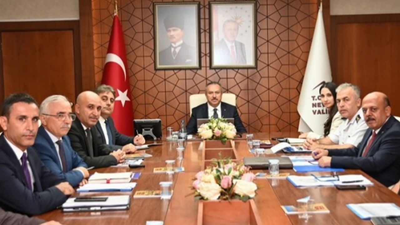 Nevşehir'de üniversitelerde okuyan ve yeni kayıt yaptıran öğrencilerin barınma durumları, 2023-2024 öğretim yılı boyunca alınacak güvenlik, trafik, ulaşım konuları ile ilgili değerlendirme toplantısı yapıldı.