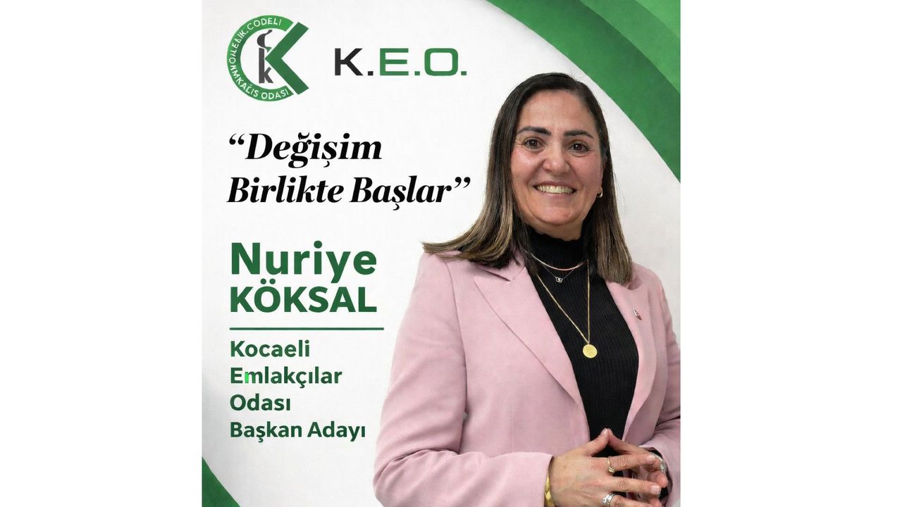 Kocaeli Emlakçılar Odası (KEO) Başkan Adayı Nuriye Köksal, 17 Ocak 2026 Cumartesi günü İzmit Kadıköy Düğün Salonu’nda gerçekleştirilecek olan oda seçimleri öncesinde projelerini ve vizyonunu kamuoyu ile paylaştı.