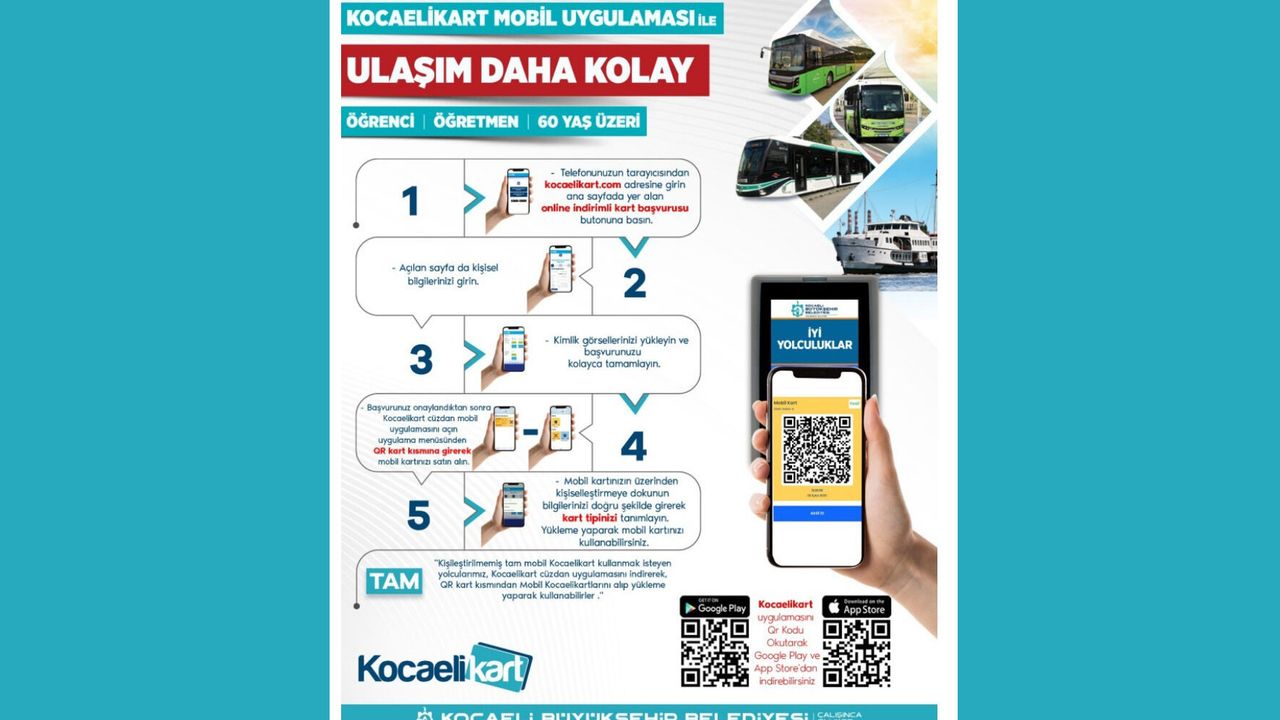 Kocaeli Büyükşehir Belediyesi’nin akıllı şehircilik vizyonunun en somut örneklerinden biri olan “Online Kocaeli Kart Sistemi” ile vatandaşlar ulaşım işlemlerini zahmetsiz, hızlı ve güvenli bir şekilde gerçekleştirebiliyor. Öğrenci, öğretmen ve 60 yaş üzerinde olan vatandaşlar ile tam (sivil) kart kullanıcıları, fiziki kart taşımadan online olarak edindikleri kartları aracılığı ile ulaşım ödemelerini QR kod ile gerçekleştirebiliyor.