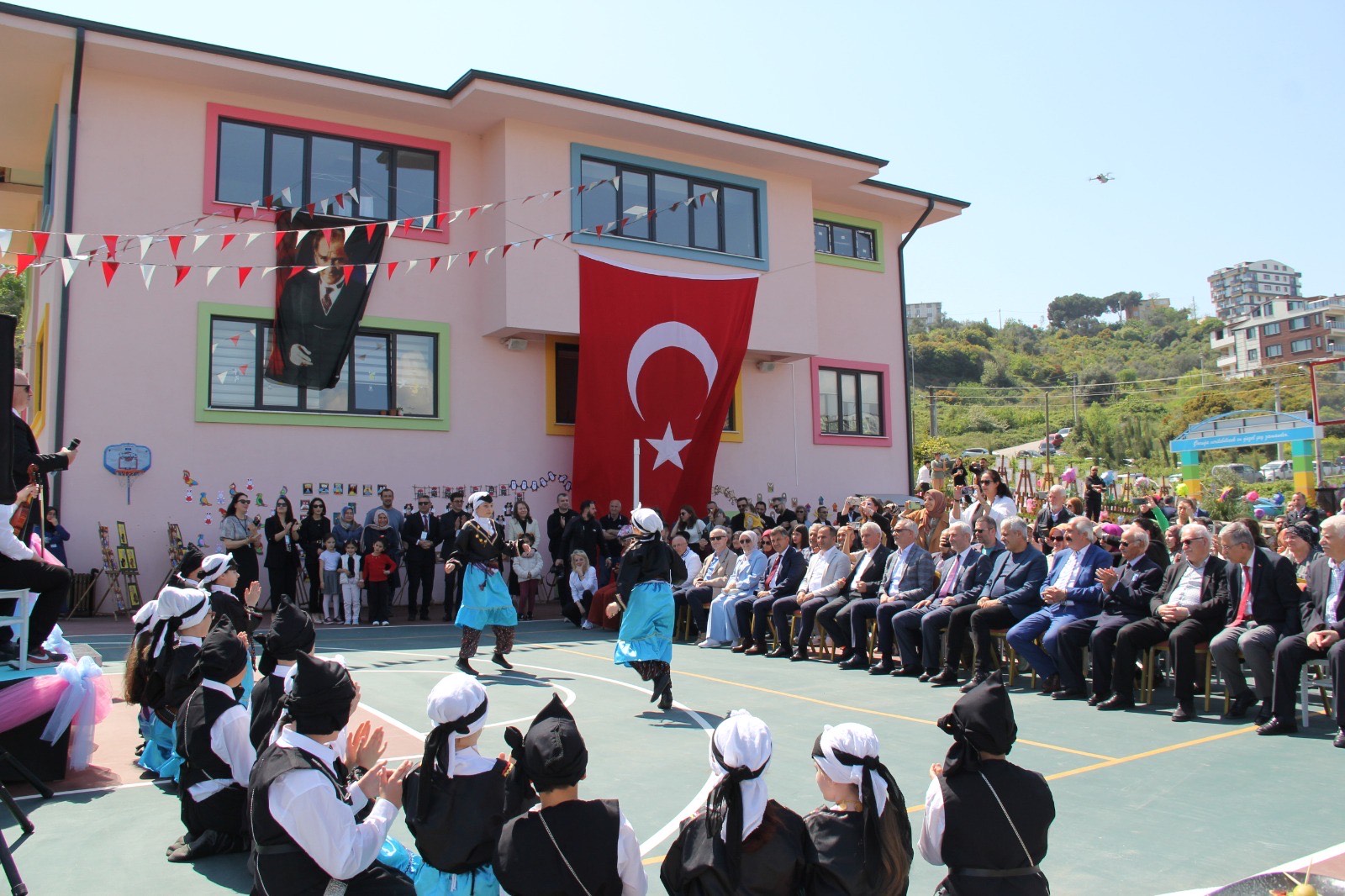 Açılışta ilk olarak okulun halk oyunları ekibi sahne aldı. Renkli ve coşkulu gösteri, davetlilerden büyük alkış aldı. Gösterinin ardından protokol konuşmalarına geçildi.