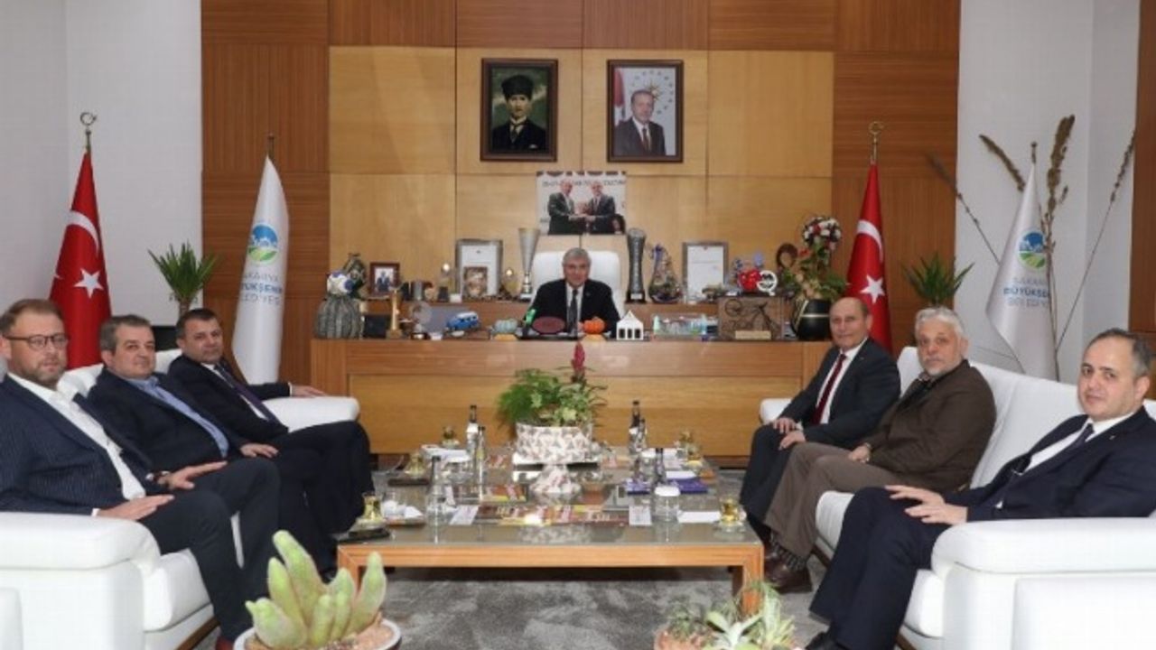 Sakarya Büyükşehir Belediye Başkanı Ekrem Yüce, Sakarya Ticaret Borsası Başkanı Mustafa Genç, Meclis Başkanı Bekir Uztürk ve beraberindeki yönetim kurulu üyelerini konuk etti.SAKARYA (İGFA) - Ticaret Borsası Başkanı Genç, Meclis Başkanı Uztürk ve beraberindeki heyeti konuk eden Sakarya Belediye Başkan Ekrem Yüce, “Ticaret Borsası tarımda konusunda en önemli paydaşlarımızdan birisi. Buluşmalarımızda da ana gündemimiz tarım. İnşallah birlikte güzel çalışmalara imza atacak, Sakarya’nın tarım geleceğine yön vermeye devam edeceğiz” dedi.