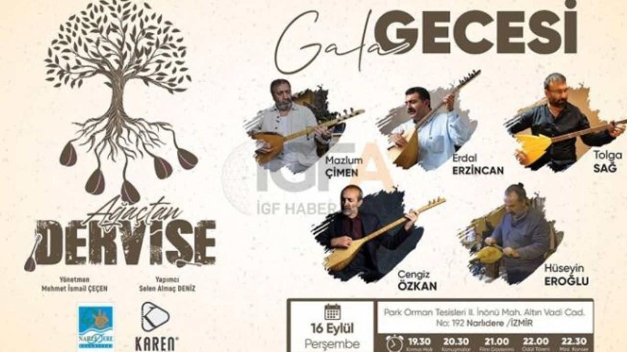 Belediye Başkanı Ali Engin, gala gecesinin 16 Eylül Perşembe akşamı saat 19.30’da Park Orman Narlıdere Park Orman Tesisleri’nde usta sanatçılarla birlikte gerçekleşeceğini söyleyerek tüm bölge halkına davette bulundu. Etkinlik günü; saat 18.30 itibariyle eski belediye önünden, yarım saatte bir ring seferleri yapılacak. Mini bir konserlerin olacağı gala gecesinin yapımcılığı Selen Almaç Deniz’e, yönetmenliği ise Mehmet İsmail Çeçen’e ait. Gala gecesinde belgesel filminde yer alan saz sanatçıları Erdal Erzincan, Mazlum Çimen,Tolga Sağ, Cengiz Özkan ve Hüseyin Eroğlu da katılacak.