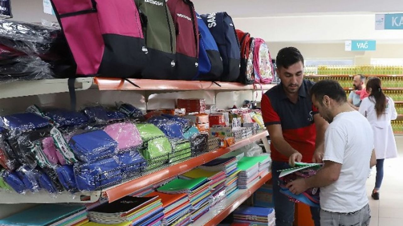 Sosyal Market aracılığıyla sağlanan destek kapsamında öğrencilere ilkokul çantası (beslenmeli), ortaokul lise çantası, abaküs, su matarası, kırmızı kalem, kurşun kalem, 12’li kuru boya, silgi, 60 sayfa küçük boy kareli defter, 60 sayfa küçük boy çizgili defter, 40 sayfa orta boy resim defteri, kalemlik, kalemtıraş, 60 sayfa büyük boy çizgili defter, yapıştırıcı ve 60 sayfa büyük boy kareli defter desteği veriliyor.