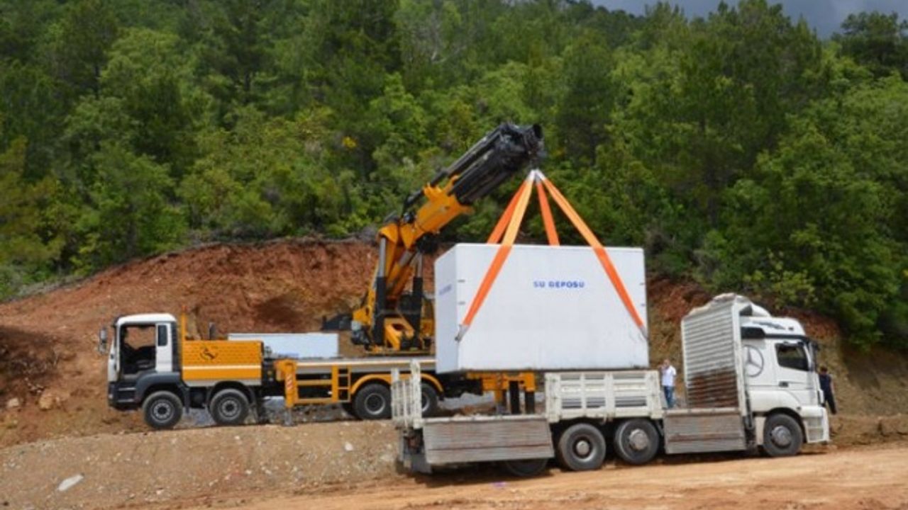 Her biri 25 tonluk 8 hazır içme suyu deposu mahallenin yüksek kesimlerinde hazırlanan noktaya indirildi. Depoların hazırlanan yere konmasının ardından içme suyu kaynağından çekilecek hatla su bağlantısı sağlanacak ve Kurban Bayramı’ndan önce mahalleye yeni depodan su verilecek.