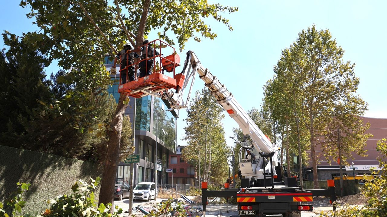 Kocaeli Büyükşehir Belediyesi, Alikahya Tramvay Hattı üzerinde yer alan ağaçların çalışmalar sırasında zarar görmemesi için budamasını gerçekleştiriyor.