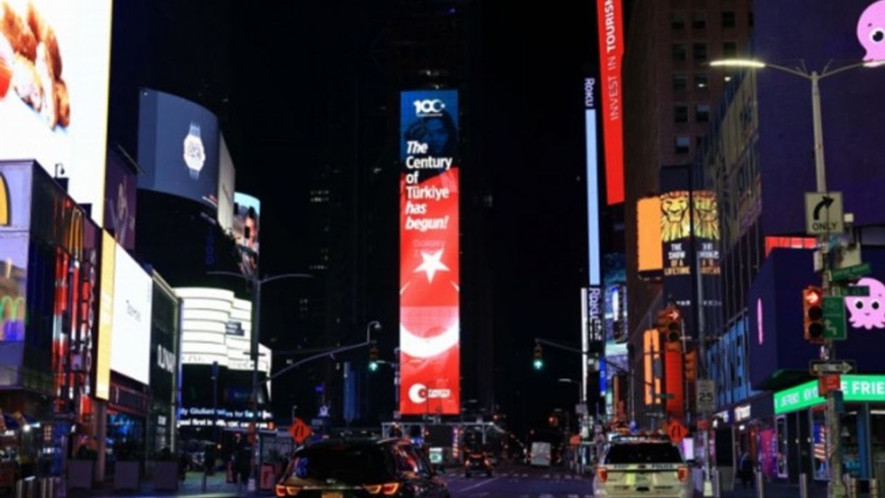 Birleşmiş Milletler (BM) 78. Genel Kurulu’nun gerçekleştirildiği New York’un merkezindeki cadde ve sokaklar ile Times Meydanı'ndaki led ekranlarda, Cumhuriyet'in 100. Yılı etkinlikleri kapsamında Türkiye Yüzyılı’nın tanıtımı yapıldı.ANKARA (İGFA) - İletişim Başkanlığı'ndan aktarılan habere göre Times Meydanı'ndaki led ekranlarda, “Türkiye Yüzyılı başlıyor” yazılı Türk bayraklı tanıtımlar yapılırken Türkiye Yüzyılı'nı anlatan dijital içeriklerin yer aldığı led ekranlı kamyonetler de New York’un kalabalık cadde ve sokaklarında dolaştırıldı.