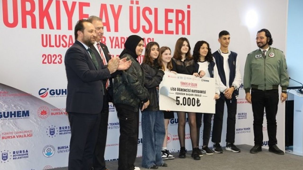 Bursa Büyükşehir Belediyesi, Bursa Teknik Üniversitesi, İl Milli Eğitim Müdürlüğü ve Gökmen Uzay ve Havacılık Merkezi işbirliğinde hazırlanan ‘Türkiye Ay Üsleri Ulusal Fikir Yarışması’nda dereceye giren proje sahipleri, düzenlenen törenle ödüllendirildi.BURSA (İGFA) - Büyükşehir Belediyesi, ‘uzay konusunda farkındalık oluşturmak amacıyla’ Bursa Teknik Üniversitesi, İl Milli Eğitim Müdürlüğü ve Gökmen Uzay ve Havacılık Merkezi (GUHEM) ile birlikte özel çalışmaya imza attı. Geleceğin mimarisi konusunda gençlerin fikirlerine açık olan, uzay mimarlığı ve dünya dışı şehircilik konularının ele alındığı ‘Türkiye Ay Üsleri Ulusal Fikir Yarışması’, gençlerin yoğun katılımıyla tamamlandı. Toplam 140 bin TL para ödüllü ve ‘Dış Gezegen Şehirciliği ve Uzay Mimarlığı’ konularının ele alındığı yarışmada, gelecek ufuklu vizyon, projelendirme ve milli teknoloji hamlesi sahalarında ortam, kaynak, yaşam ve araştırma alanı imkanları, tasarımı ve inşası üzerine yeni gelişen faaliyet alanına vizyoner düşünce ve ürün verilmesi amaçlandı. Üç farklı kategoride yapılan yarışmaya; ‘üniversite öğrencisi’ kategorisinde 19, ‘lise öğrencisi’ kategorisinde 9 ve ‘profesyonel kategoride’ 13 olmak üzere toplam 41 ekip katıldı.