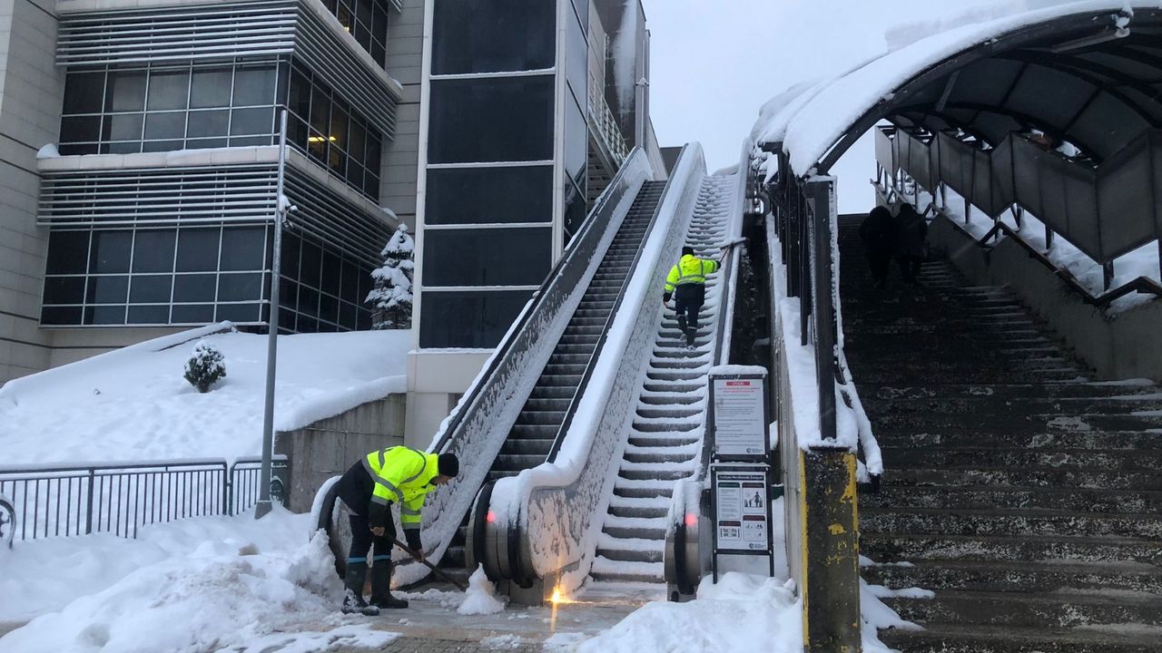 Üstgeçitler başta olmak üzere aile sağlığı merkezleri, otobüs durakları, kamu binalarının önü, ibadethaneler ve ilçelerin muhtelif noktalarında kar yağışının olumsuz etkilerine karşı temizlik yapan ekipler, ulaşımının en önemli noktalarında güvenli geçişi sağlamak için yoğun çaba sarf ediyor.