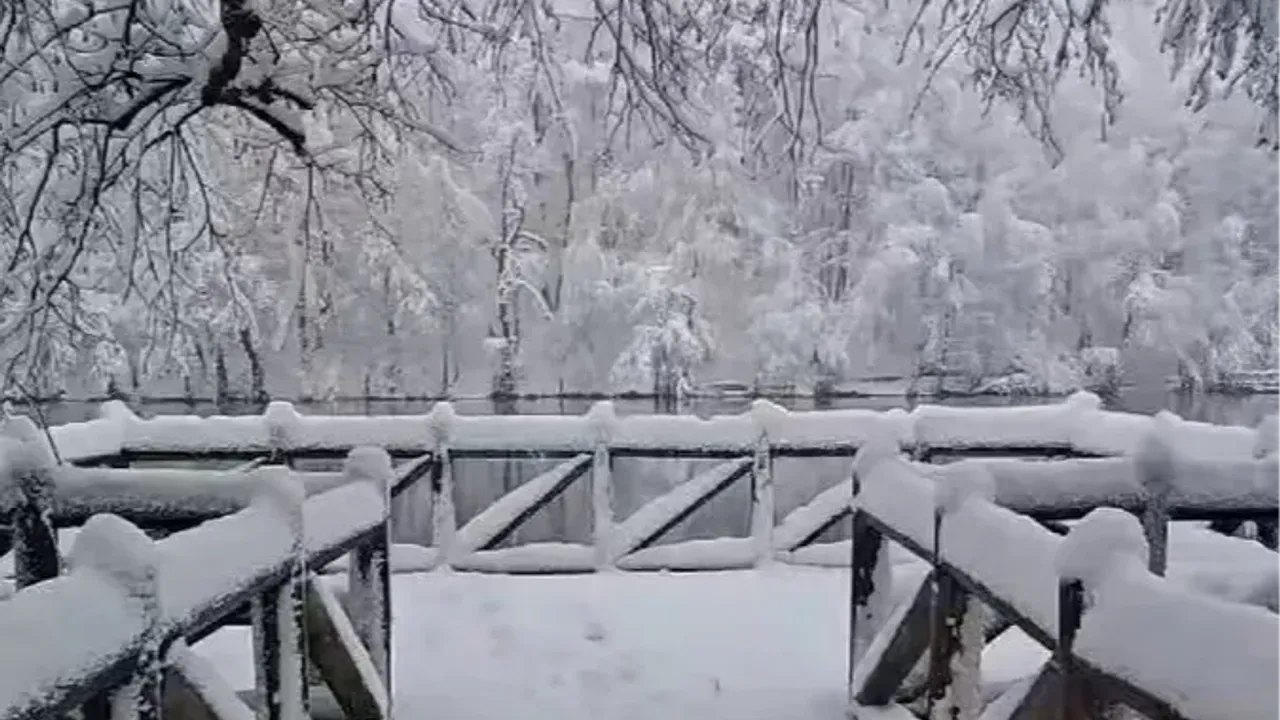 Yılın ilk karıyla beyaz gelinliğe bürünen Bolu Yedigöller Milli Parkı, yağan karla birlikte adeta bir masal diyarına dönüştü.