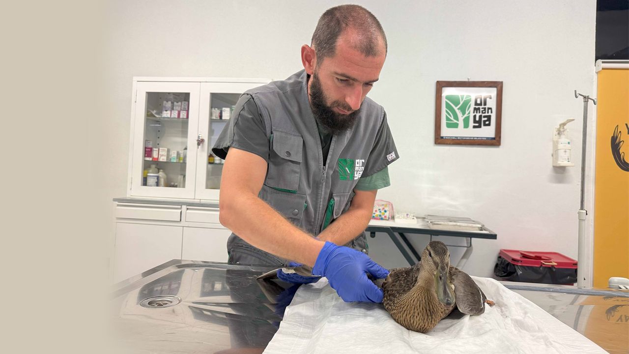 Yaralı ve yardıma muhtaç yaban hayvanları için güvenli bir sığınak olan Ormanya Yaşam Merkezi’ne teslim edilen ördeğe veteriner hekimler tarafından ilk muayenesi yapıldı.