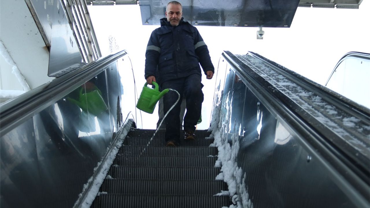 Teknik olarak “sürekli”, “yavaş” ve “dur-kalk” modlarında çalışan yürüyen merdivenler, olumsuz kış koşulları nedeniyle donma riski taşıyan mekanik aksamlarının zarar görmemesi için 7/24 çalışır konumda hizmet verecek şekilde ayarlandı. Böylece soğuk havaların etkisiyle herhangi bir arıza yaşanmaması için merdivenlerin mekanizmalarının sürekli aktif kalması sağlanacak.
